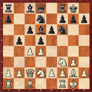 This should look familiar! I had the exact same position with the white pieces in the first round against Murgescu. In that game my opponent played the main line, 7. ... a6. I had looked up my opponent before the game and saw he played the Catalan so I prepared a rare move: 7. ... b6!? At first glance this move looks like it's asking for trouble - can't white just play Ne5? But actually the idea is to sacrifice the exchange! After some considerable thought my opponent played: 8.Qxc4! A good practical decision! He correctly suspected that this was some kind of preparation and decided not to follow me into my rabbit hole of computer analysis. The main move is 8.Ne5, after which black plays 8. ... Qxd4! 9.Bxa8 Qxe5 and for example after 10.Bf3 Nd5! 11.Qxc4 Ba6 12.Qa4 c5 (analysis diagram) black has full compensation for the material deficit since it is hard for white to develop the queenside.